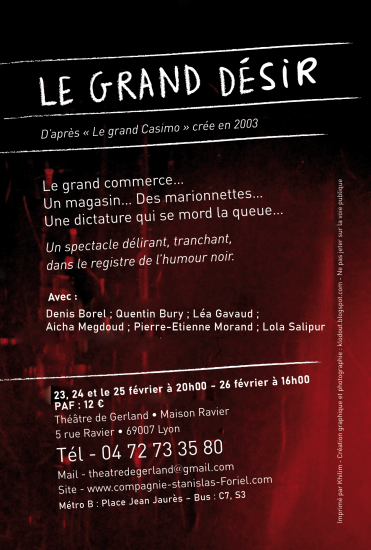 Le théâtre de gerland a le plaisir de reprendre sa dernière création : LE GRAND DESIR (mars 2023) pour l'association :